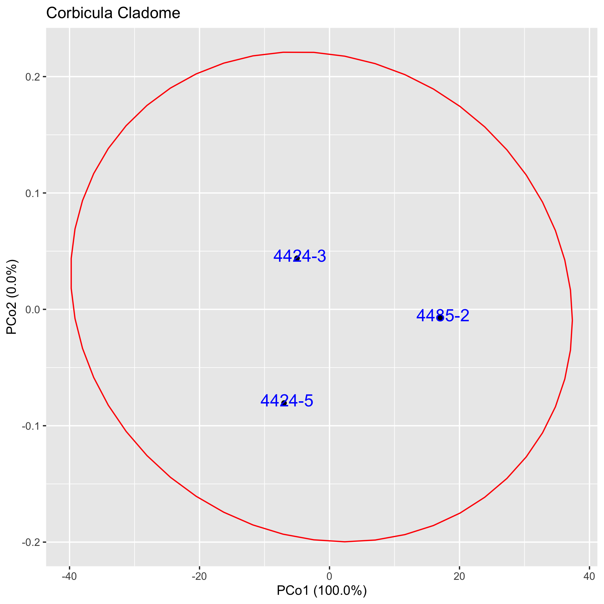 The graphs below depict in two dimensions all pair-wise ingroup distances within the cladome. See the Cladmoics FARQ for more information.