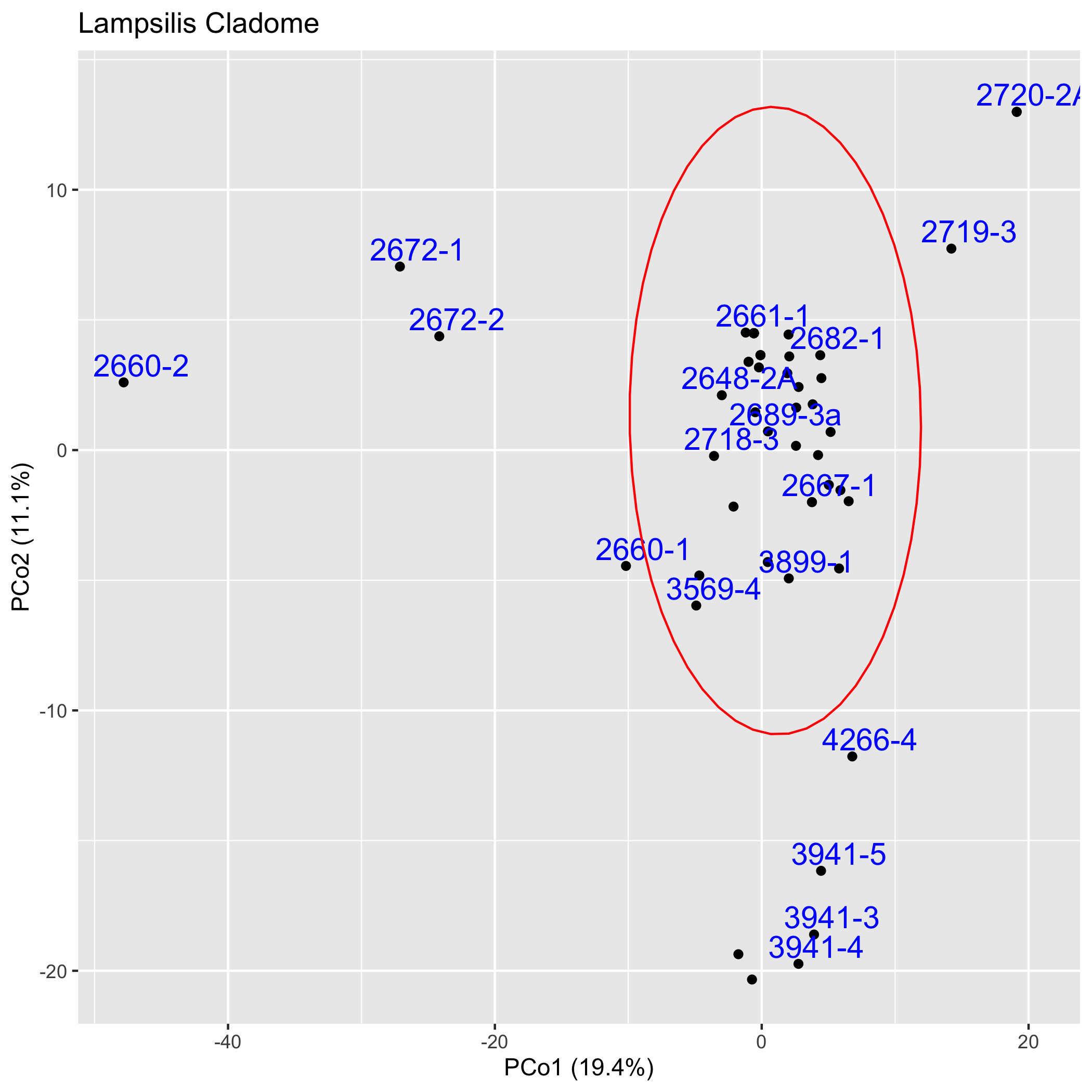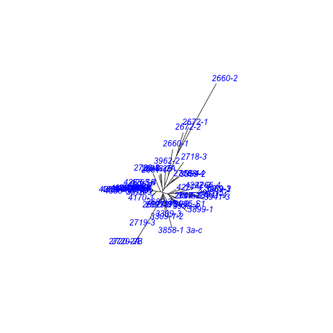 The graphs below depict in two dimensions all pair-wise ingroup distances within the cladome.