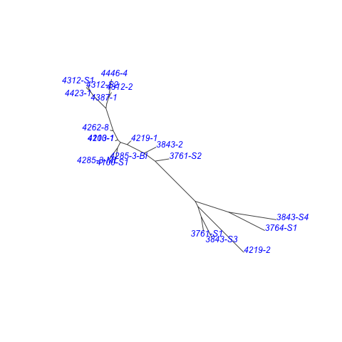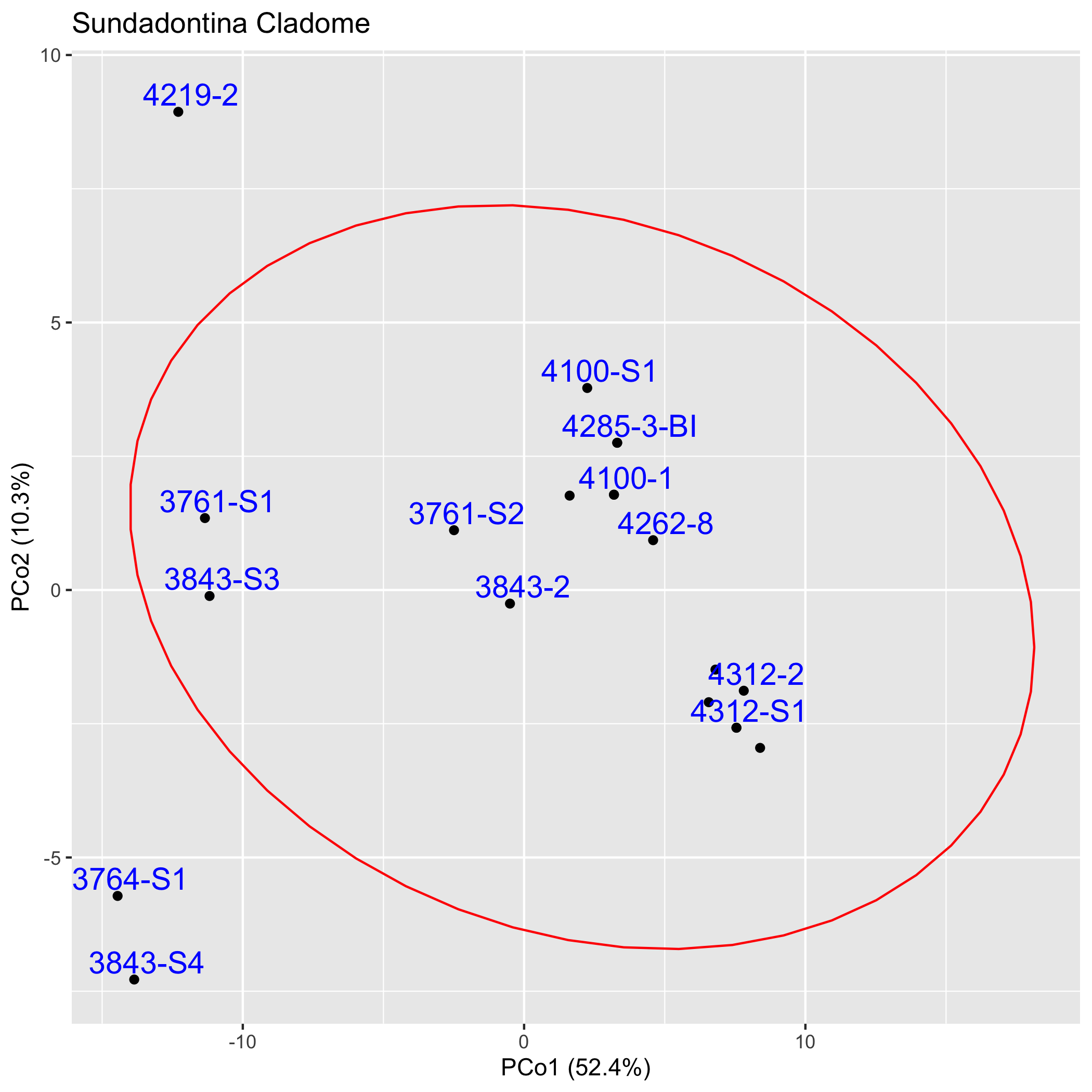 The graphs below depict in two dimensions all pair-wise ingroup distances within the cladome.