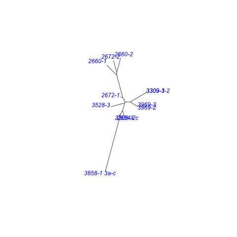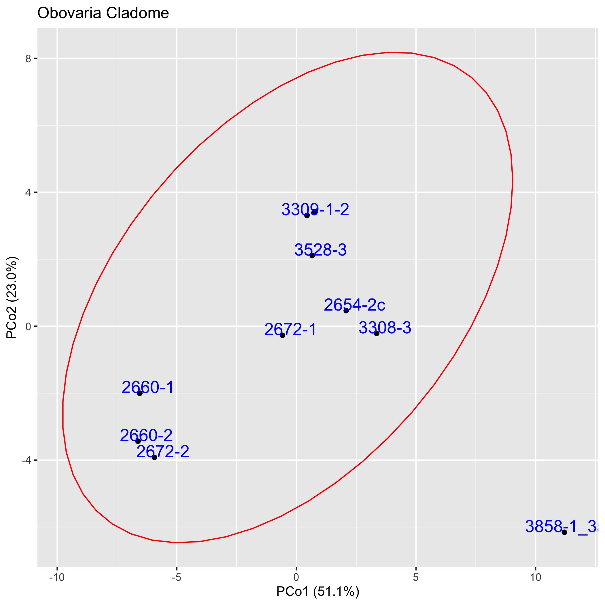 The graphs below depict in two dimensions all pair-wise ingroup distances within the cladome.