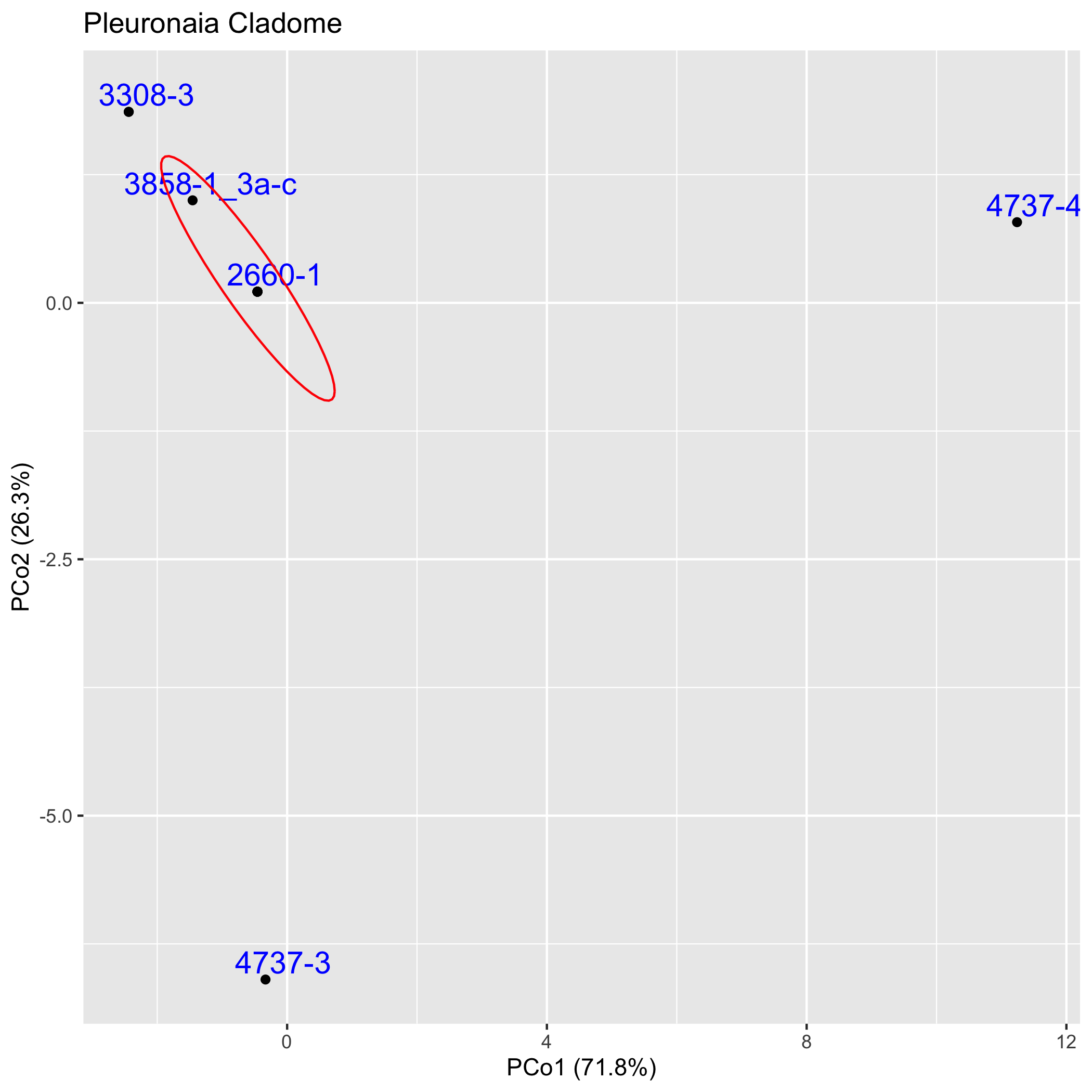 The graphs below depict in two dimensions all pair-wise ingroup distances within the cladome.