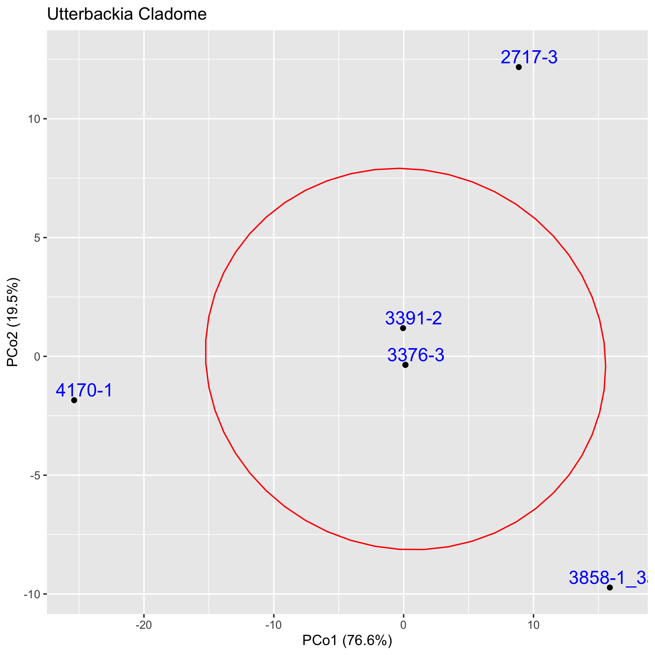 The graphs below depict in two dimensions all pair-wise ingroup distances within the cladome.