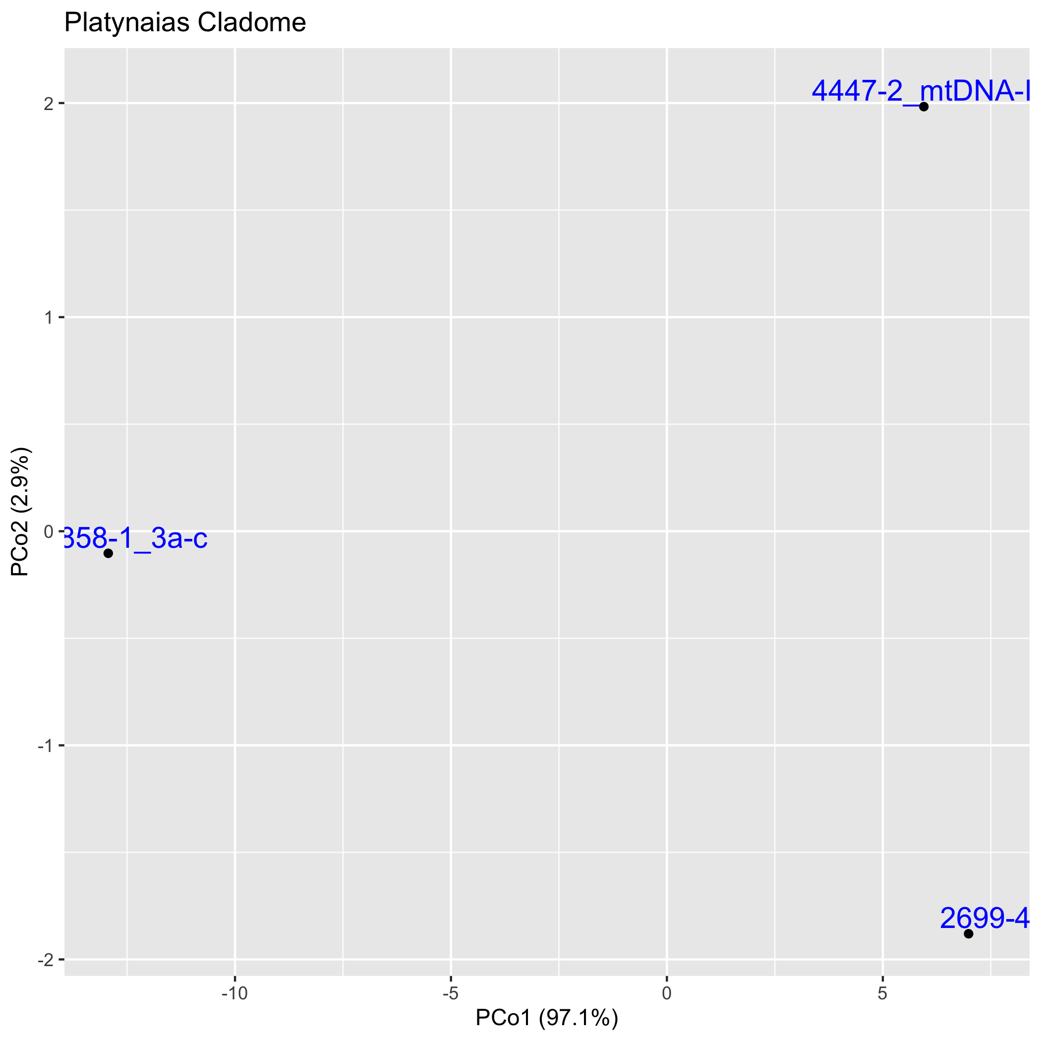The graphs below depict in two dimensions all pair-wise ingroup distances within the cladome.