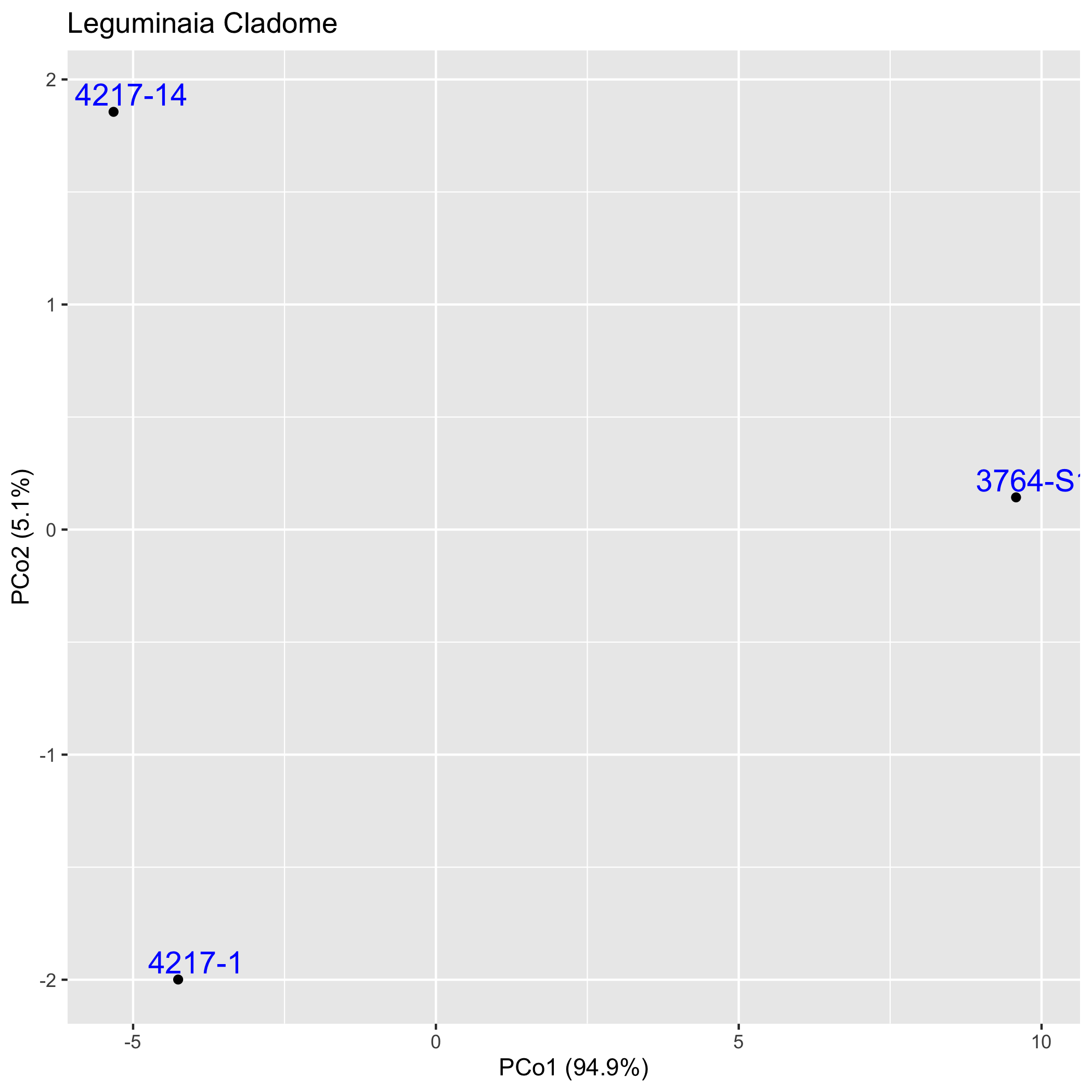 The graphs below depict in two dimensions all pair-wise ingroup distances within the cladome.
