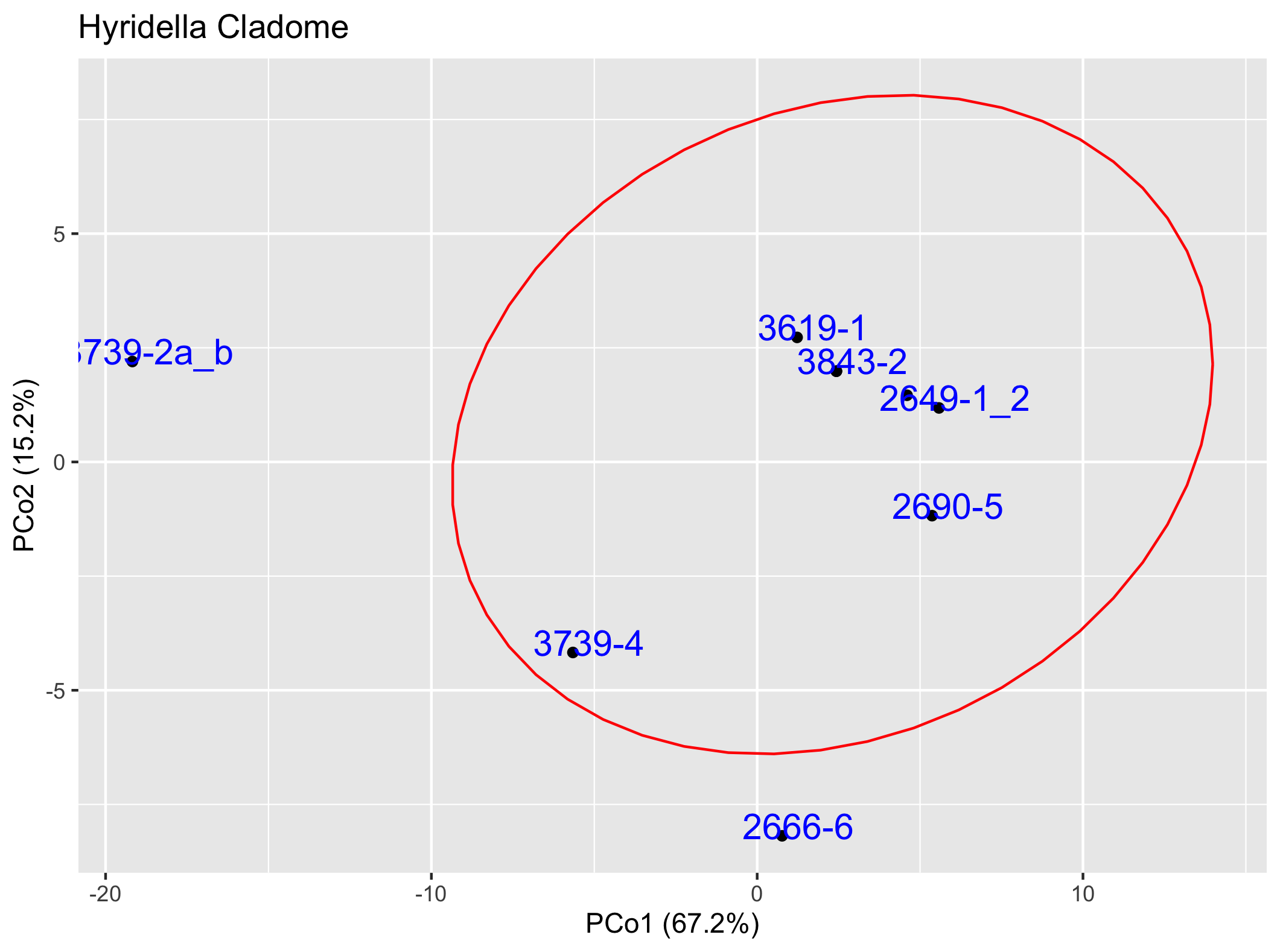 The graphs below depict in two dimensions all pair-wise ingroup distances within the cladome.