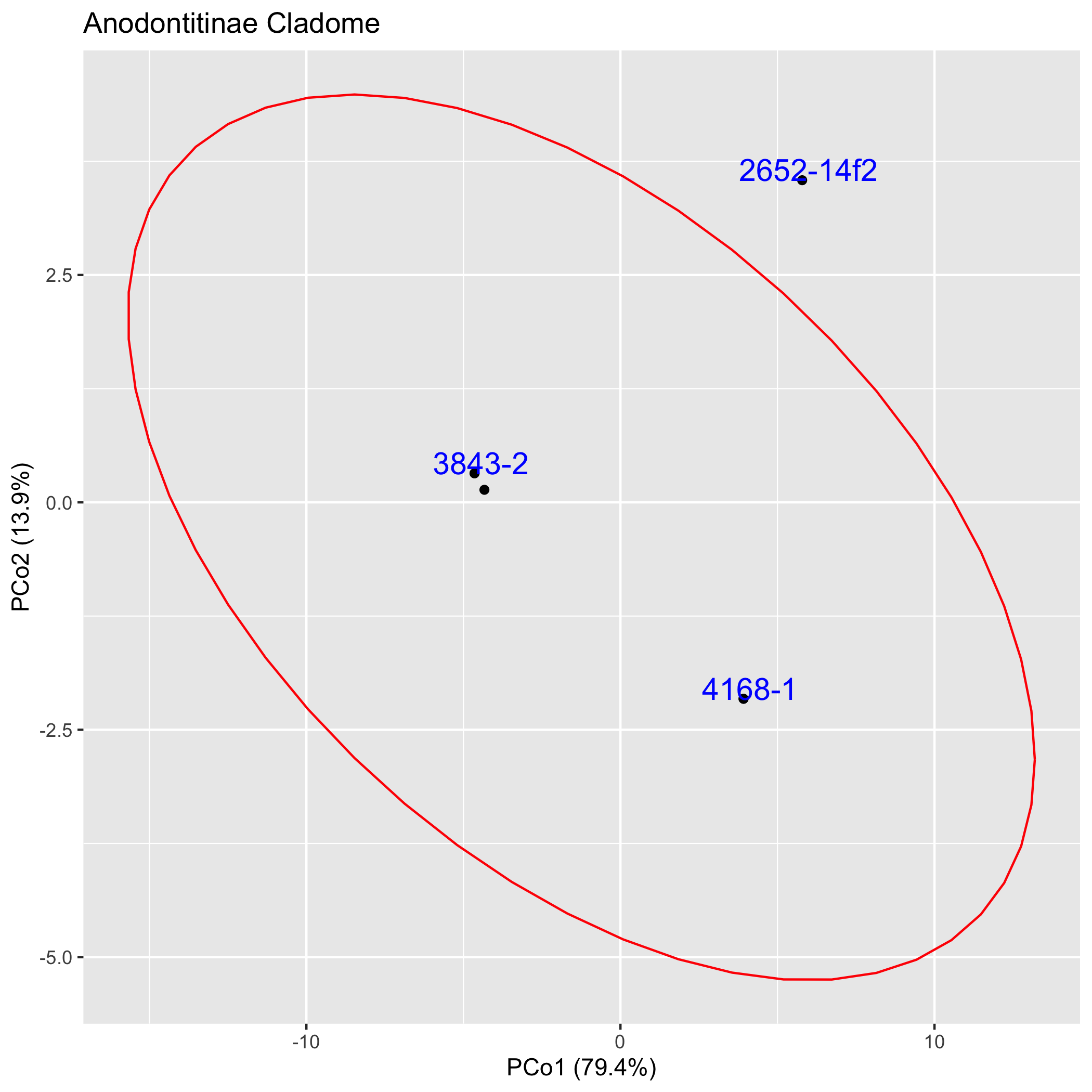 Pairwise Cladogram ClusteringThe graphs below depict in two dimensions all pair-wise ingroup