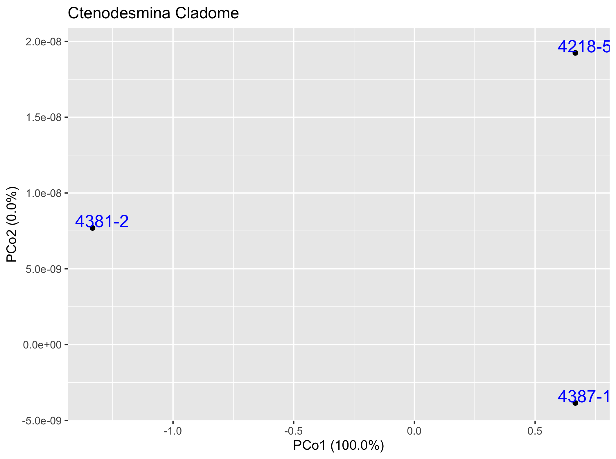 The graphs below depict in two dimensions all pair-wise ingroup distances within the cladome.
