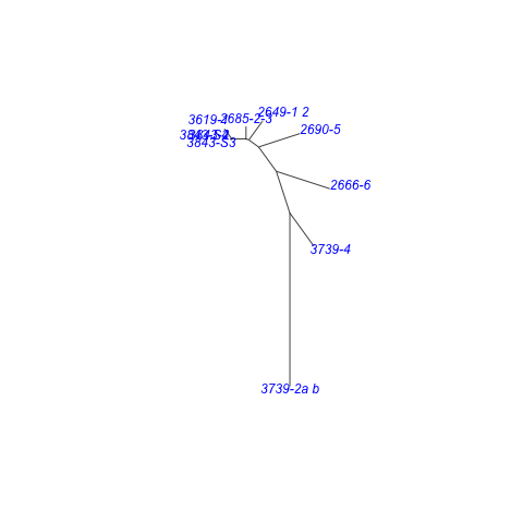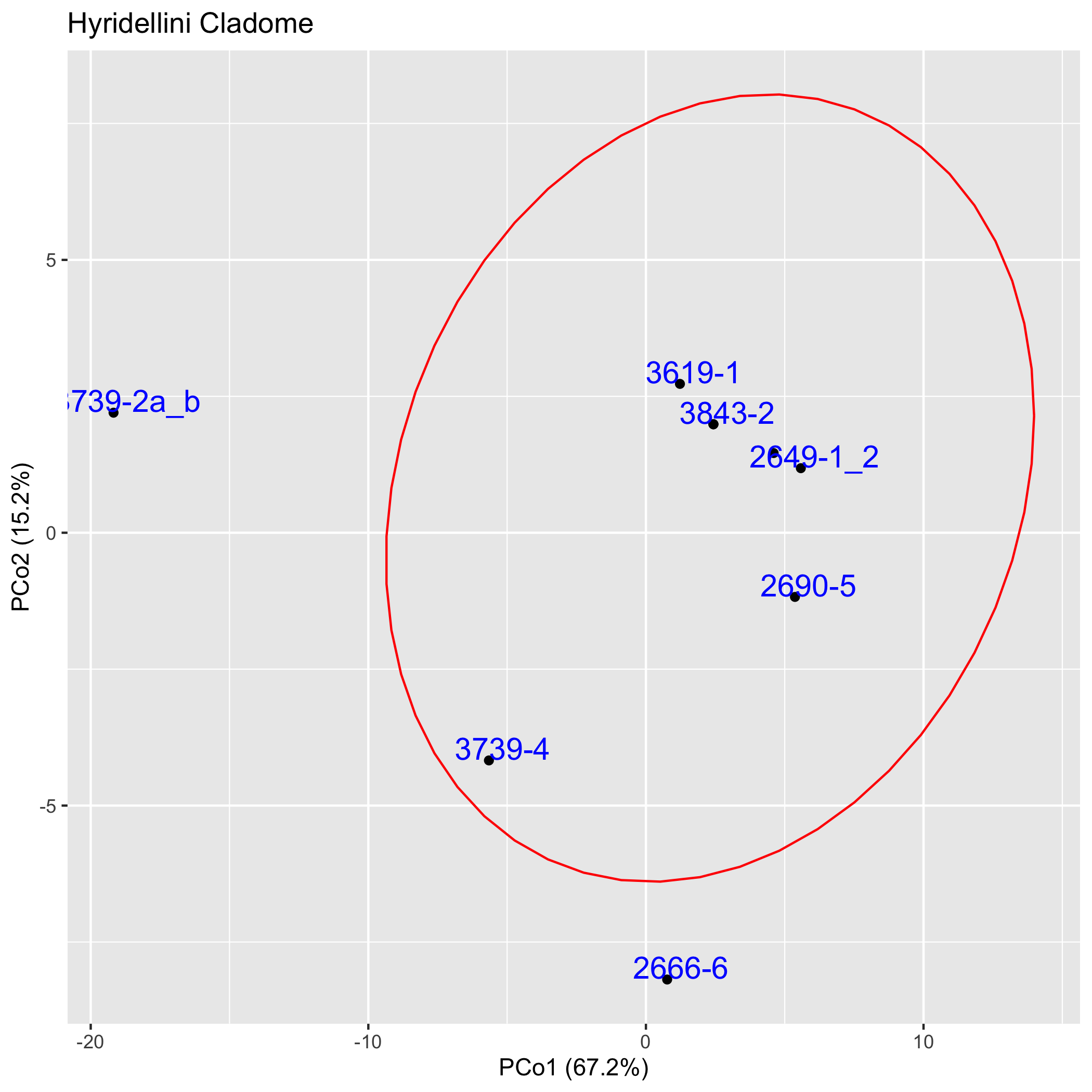 The graphs below depict in two dimensions all pair-wise ingroup distances within the cladome.