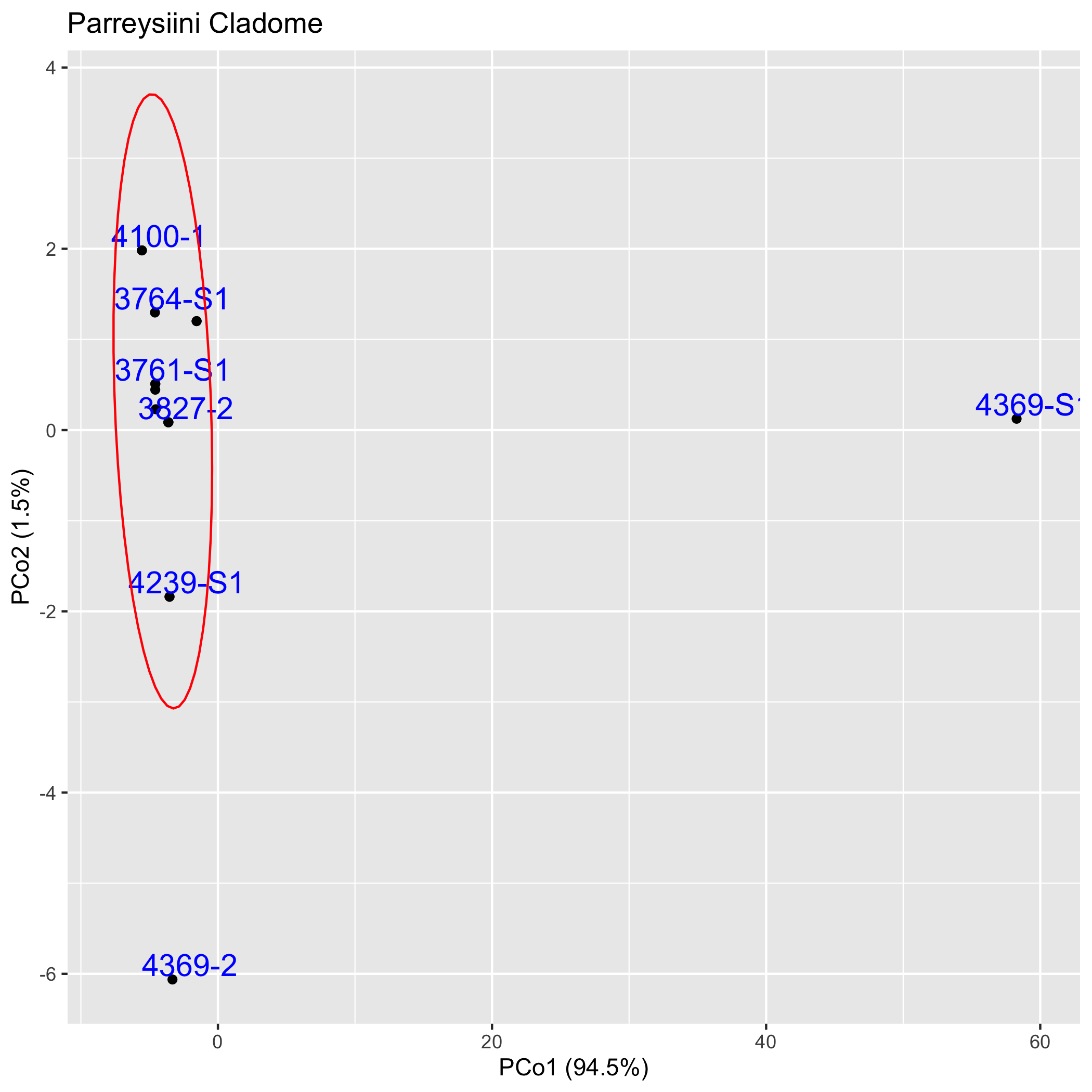 Pairwise Cladogram ClusteringThe graphs below depict in two dimensions all pair-wise ingroup