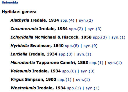 - Iredale, T. 1943. A basic list of the fresh-water Mollusca of Australia. Australian Zoologist 10: 188-230.