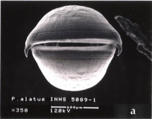 Ax-head glochidia of Potamilus alatus, February 2006 Mussel of the Month. The last image was provided by Kevin Roe.
