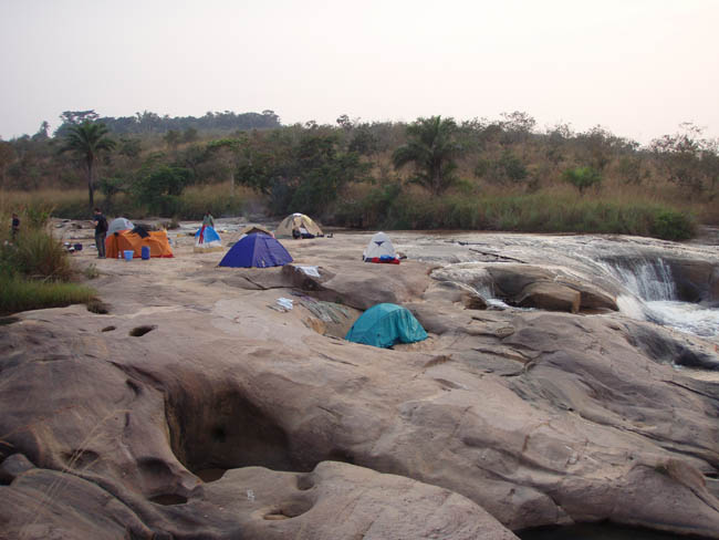 We camped near the Chutes of the Foulakari River, and our campsite atop the waterfall at Bela had a panoramic view of the Congo.