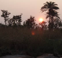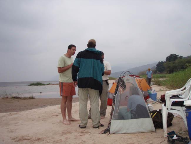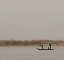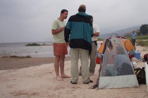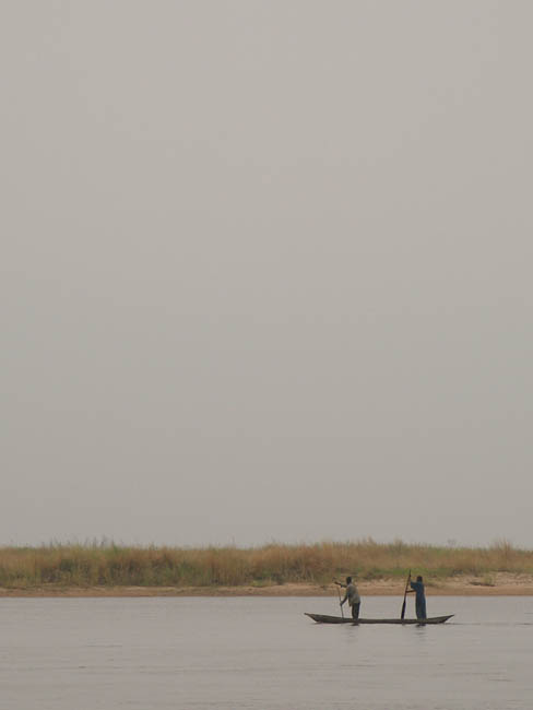 We spent only one night on a sand bar at the mouth of a creek about 15 km above Malebo Pool. It was a fine site, but we didn't choose it: that was where the boat's motor died. |
