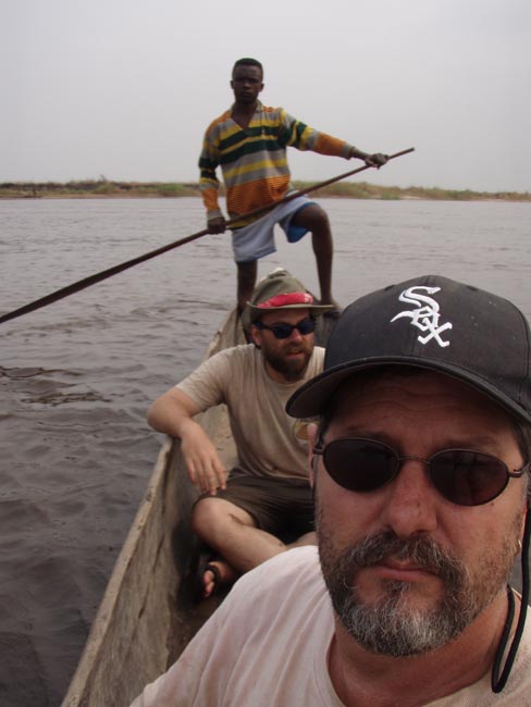 At the mouth of the Foulakari, we camped on a sand bar below the bouldered bank of the Congo. That site afforded us an excellent opportunity to witness the weird oscillations of the Congo. Click here to see a video.