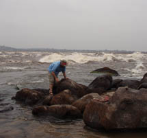 From 25 July to 19 August 2006, the MUSSEL Project was engaged with the Fish Folks of the American Museum of Natural History in a aquatic survey of the Lower Congo River in the Republic of Congo. This page deals with non-malacological aspects of the trip. For information about the freshwater mussels and associated collecting sites, click here. In the various categories below, click the thumbnail to see a larger image.