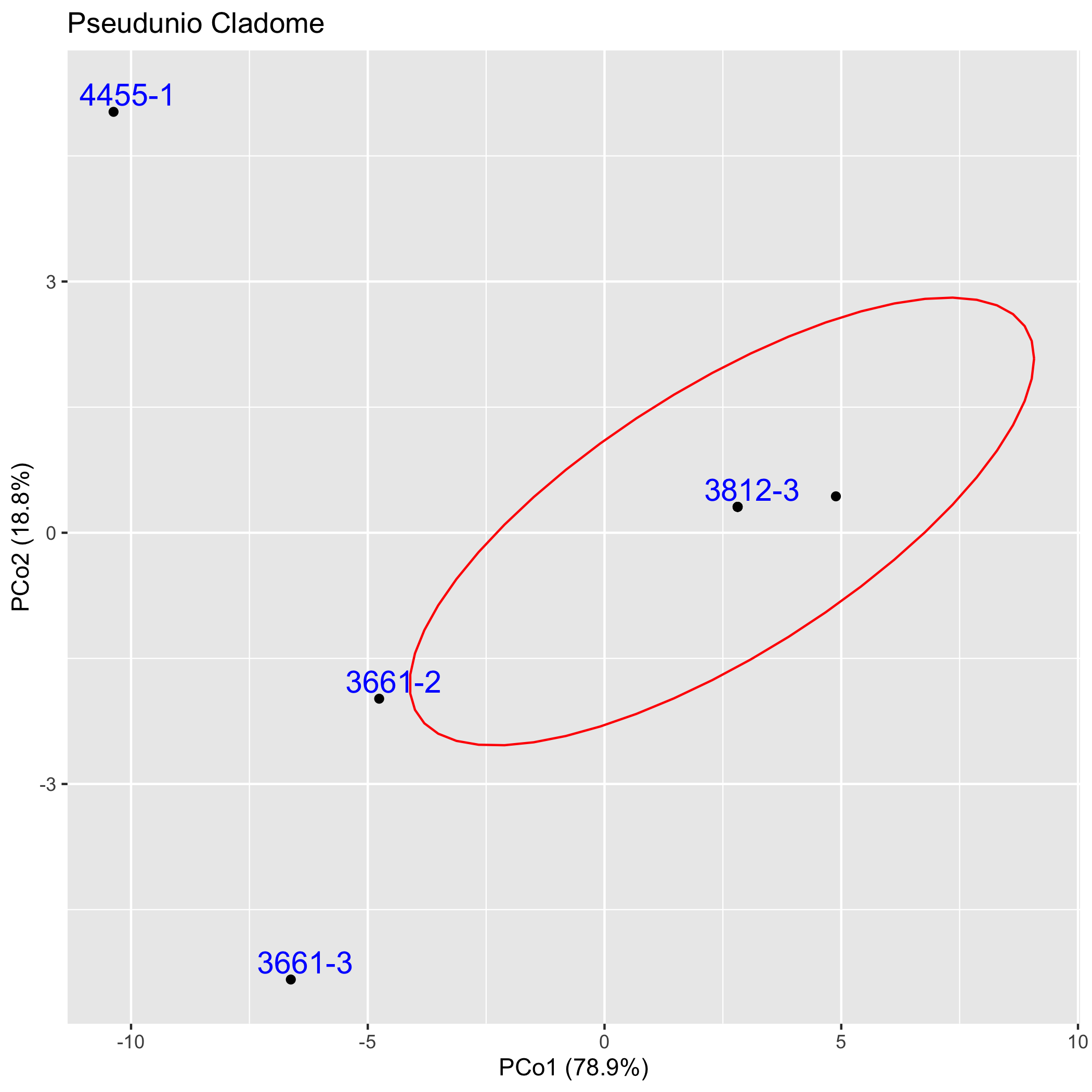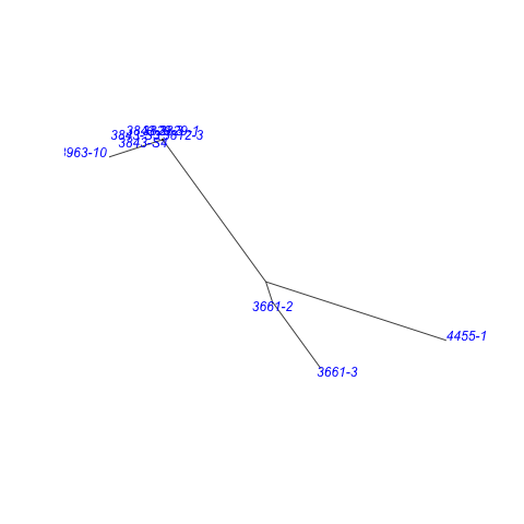 The graphs below depict in two dimensions all pair-wise ingroup distances within the cladome.