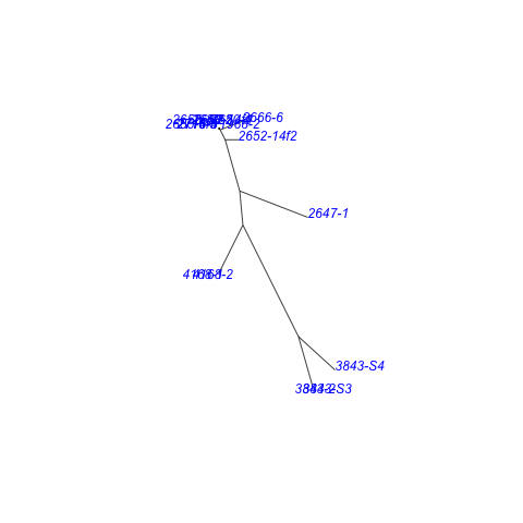 The graphs below depict in two dimensions all pair-wise ingroup distances within the cladome.