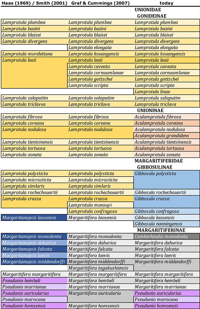 - Graf, D.L. & K.S. Cummings. 2007. Review of the systematics and global diversity of freshwater mussel species (Bivalvia: Unionoida). Journal of Molluscan Studies 73: 291-314.